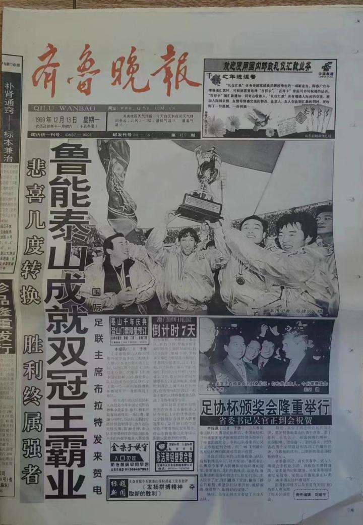 彼时的李金羽在工体的场地上痛哭流泪,而山东省体育中心则是沉浸在一片欢乐的海洋。放眼当年,整个山东和济南的媒体都对准了泰山队夺冠佳绩,捷报频传,澎湃一座城!