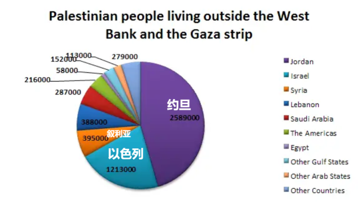 ▲海外巴勒斯坦人(2010年代)分布,其中约旦占据大头