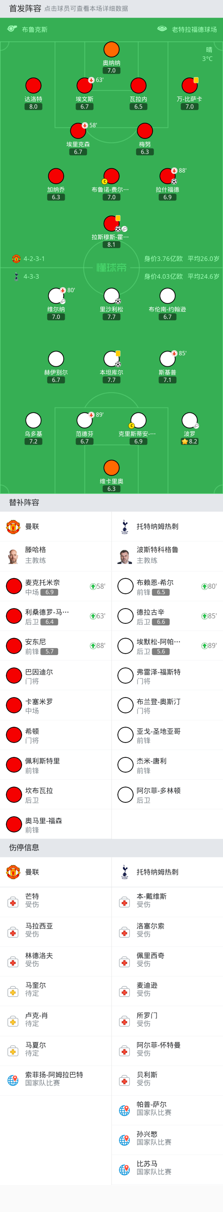 替换下场:63'35-埃文斯, 58'14-埃里克森, 88'10-拉什福德
