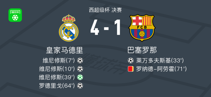 皇马vs巴萨球员评分:维尼修斯10分,阿莱士-巴尔德5.8分