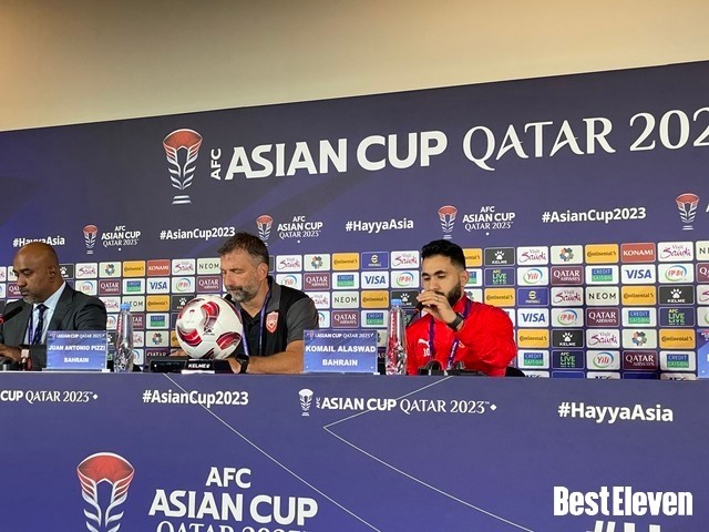 在亚洲杯首轮韩国vs巴林赛前,巴林队主帅胡安-皮齐与球员卡米勒-阿斯瓦德一同出席了赛前新闻发布会。