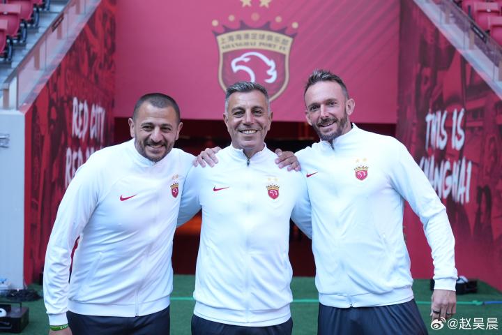 海港俱乐部新闻官赵昊晨晒出了穆斯卡特教练组新成员的合影,前布里斯班狮吼主帅阿洛伊西担任第一助理教练。
