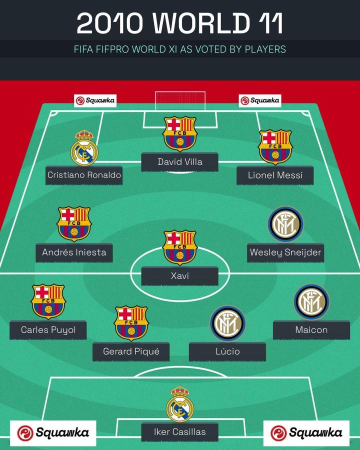 2010年的FIFA最佳阵容与2023年的阵容对...