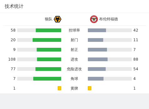 狼队首发:21-萨拉维亚, 2-多尔蒂, 22-塞梅多, 1-若泽-萨, 4-圣地亚哥-布埃诺, 27-贝勒加德, 23-基尔曼, 12-马特乌斯-库尼亚, 32-乔-霍奇, 20-汤米-多伊尔, 24-托蒂-戈麦斯