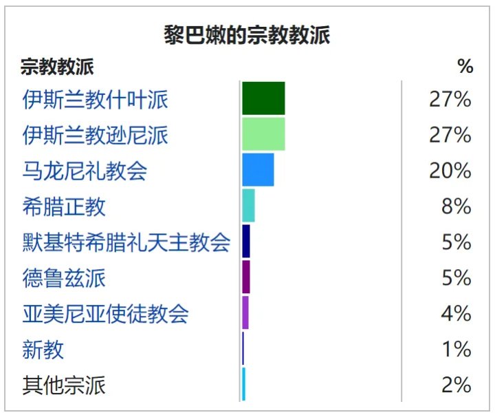 今天的黎巴嫩,基督徒约占40.6%,穆斯林约占54%,德鲁兹教派约占4.6%。因为基督教人口占据相当重的比例。因此,黎巴嫩成为了最不像阿拉伯的阿拉伯国家。