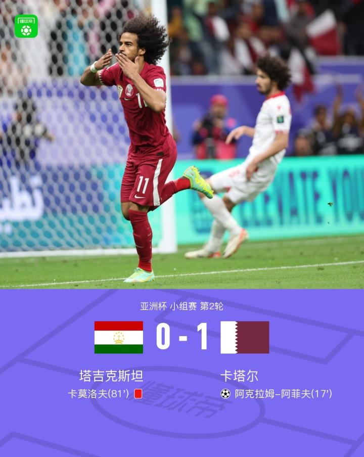 卡塔尔1-0十人塔吉克斯坦以头名出线+末轮战国足,阿菲夫制胜