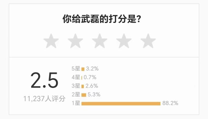 不是很认可,我懂球迷为武磊打出2.5分低分Alexxxl @懂球帝2024-01-18 09:21在昨晚0-0战平黎巴嫩的比赛中,国足当家球星武磊在比赛中表现不佳,数次错失良机,评分连续两场全队最低。而在赛后,我懂球迷也对“武球王”毫不客气地打出了低分。武磊错失机会瞬间截至发稿前,共有11237名球迷参与了对武磊的评分,其中88.2%球迷仅仅打出一星,最终打分结果仅为2.5分。(满分10分)展开更多