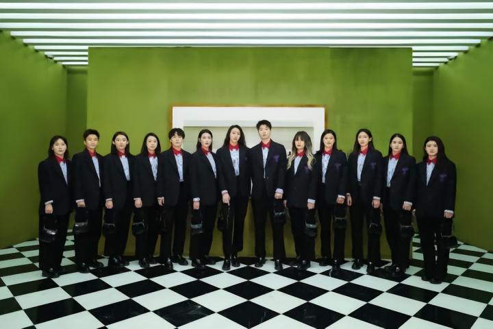 1月18日,《Pradasphere II》“中国女足之夜”专场活动于上海START星美术馆举办。中国国家女子足球队部分队员身着Prada为其量身打造的全新制服亮相,展示令人耳目一新的飒爽英姿。黑色羊毛定制套装上衣绣有女足国家队紫色凤标队徽,内搭蓝白条纹府绸衬衫,红色领口对比鲜明,彰显充满朝气、勇气与锐气的女性榜样形象。