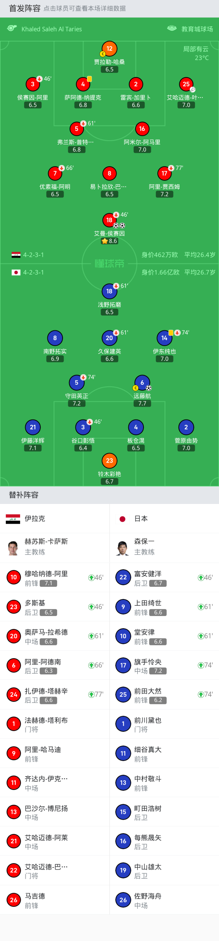 上场替补:61'20-奥萨马-拉希德, 66'6-阿里-阿德南, 46'10-穆哈纳德-阿里, 46'23-多斯基, 77'24-扎伊德-塔赫辛