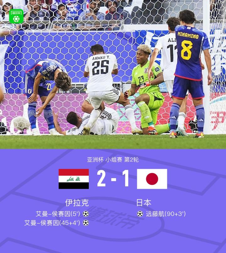爆冷!伊拉克2-1击败日本,艾曼-侯赛因双响,远藤航破门