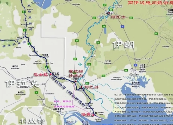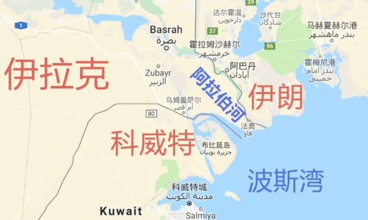 英国则在边境划分上,故意恶心了伊拉克一把。伊朗和伊拉克的边境,以阿拉伯河的航道为界。阿拉伯河通航能力不足,沿海三角洲地区受阿拉伯河的冲刷,难以建立巨大 的海港。这位日后的两伊战争埋下伏笔。