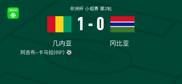 北京时间1月20日非洲杯 小组赛 第2轮,几内亚主场对阵冈比亚。几内亚阿吉布-卡马拉破门。冈比亚。最终比分1-0。