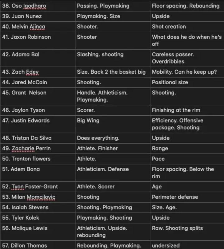 北京时间1月20日,选秀专家James Barlowe更新了选秀网站Big Board,并做出了2024年NBA选秀的第一期模拟排名。