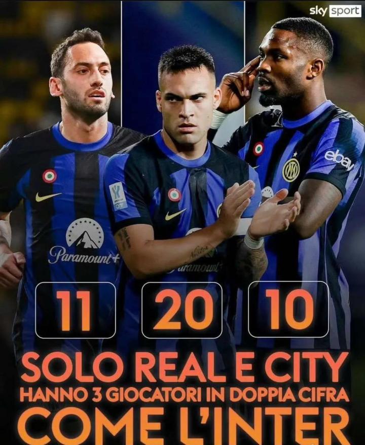 球队得分点众多也能体现出国米团体足球的特点,截至目前共有13名球员在各项赛事中取得进球,这一数据在意甲也位居前列。不过,虽然得分点分散,但主要得分点却比较集中。根据统计,国米本赛季已经有三名球员在各项赛事中打进10球以上,分别是劳塔罗、恰尔汗奥卢和小图拉姆,在五大联赛中只有皇马、曼城和国米达成了这一成就。
