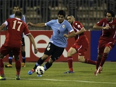 那届世界杯,亚洲有4.5个名额。约旦拿到了0.5个名额,参加洲际附加赛。洲际附加赛,约旦抽到了南美劲旅乌拉圭。