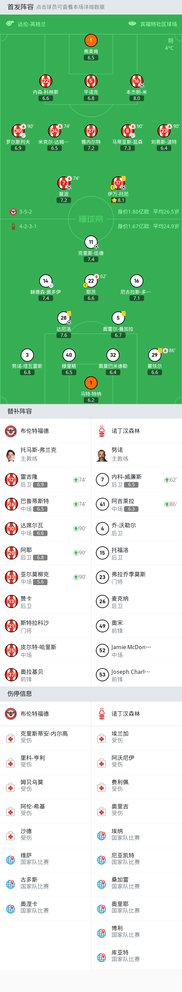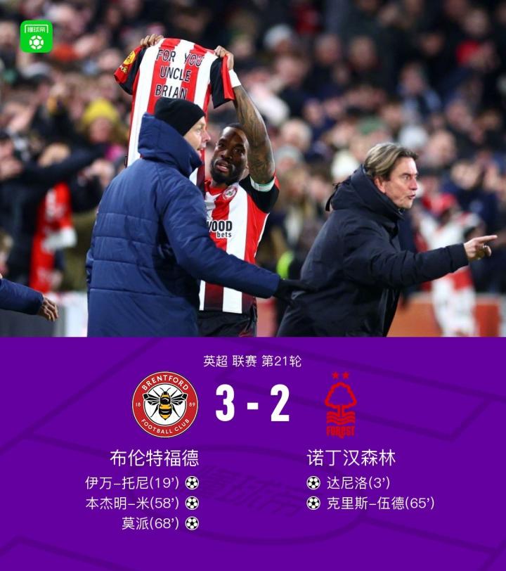 布伦特福德3-2逆转诺丁汉森林,托尼解禁首战破门,莫派制胜