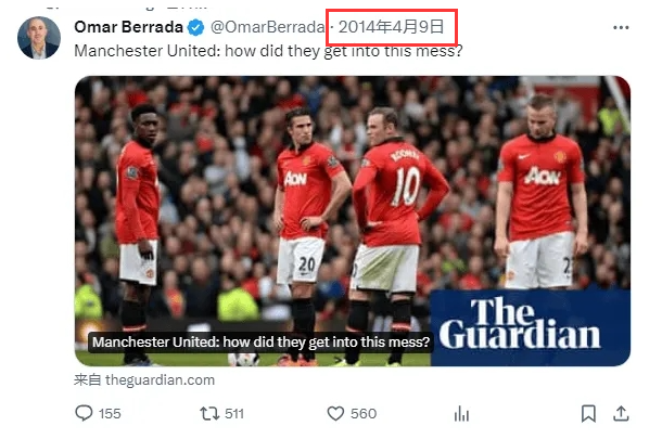 更为关键的是,贝拉达早就对曼联有“关注”。在2014年,他就曾在个人社媒上转发了“曼联是怎么陷入到如今困境”的文章。