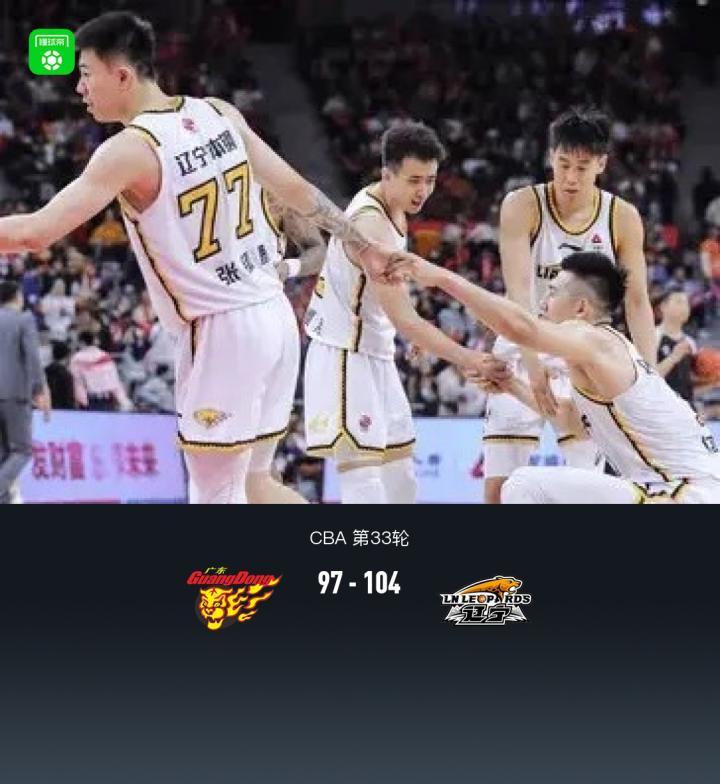 第四节广东特雷蒙特-沃特斯拿下8分,辽宁李虎翼拿下9分,最终广东97-104不敌辽宁