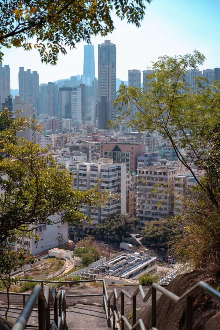 就在美荷楼背后还有一座嘉顿山,15分钟登顶,可以眺望九龙全景。这里是隐秘的香港夜景圣地,比维港小众多了,而且是TVB取景地。