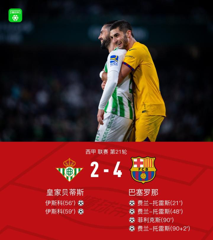 剑南春|巴萨4-2客胜贝蒂斯,费兰3射1传,伊斯科双响