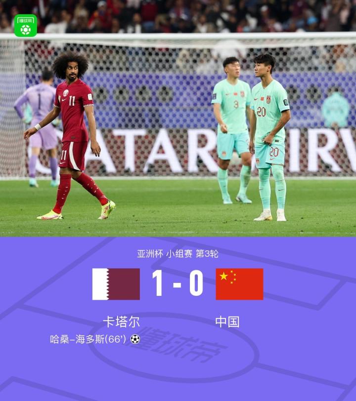 出线仅存理论可能!国足0-1卡塔尔小组赛2平1负0进球居第三