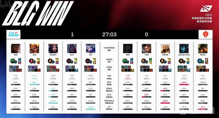 2024LPL春季赛:BLG 2-1 TES,BLG首战告捷拿下揭幕战