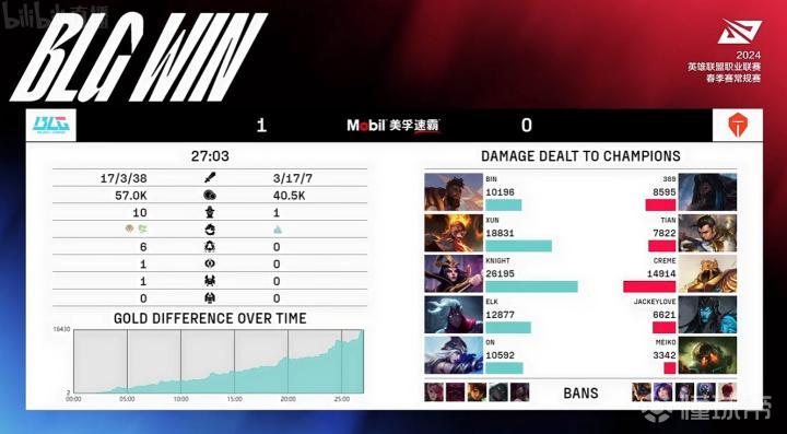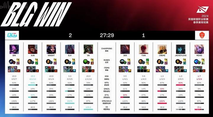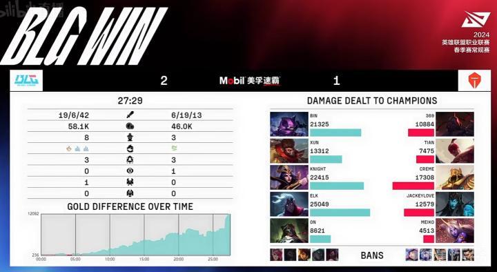 第26分钟,BLG推上高地击杀TES多人后一波终结比赛,恭喜BLG先下一城。