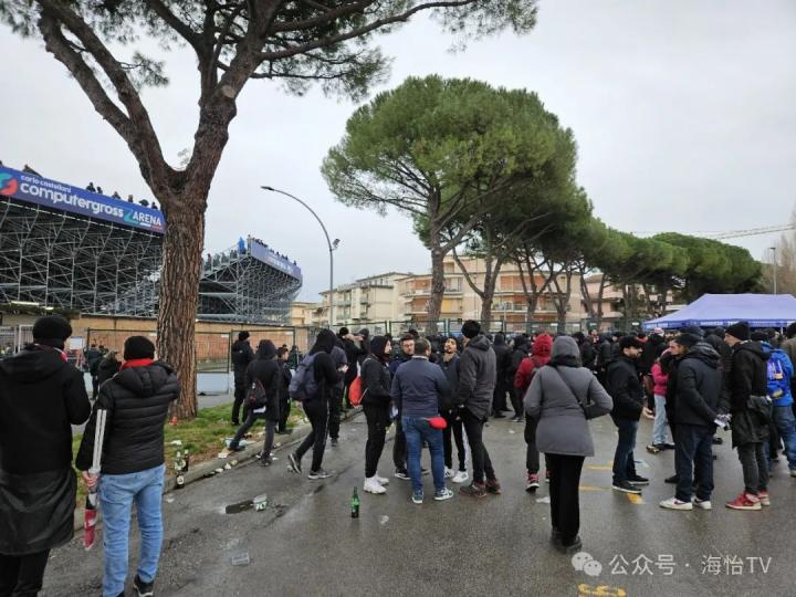 由于恩波利的人口实在太少了,这也成为了我在意大利观看的所有比赛中唯一选择现场购票的,哪怕对手是豪门球队AC米兰,现场门票也肯定不会卖完。不过到达球场后,我还是有些担心买不到票的,因为远征的米兰球迷数量超乎了我的想象,球场外的米兰球迷成群地聚集,他们仿佛把恩波利的主场变成了自己的主场。