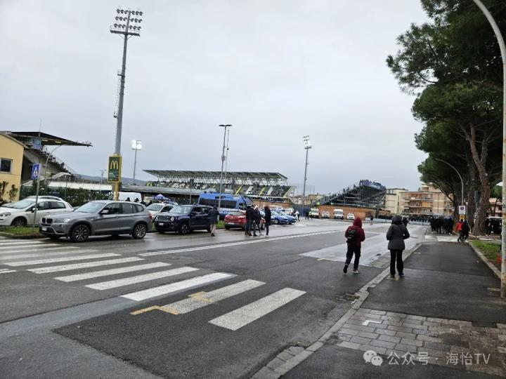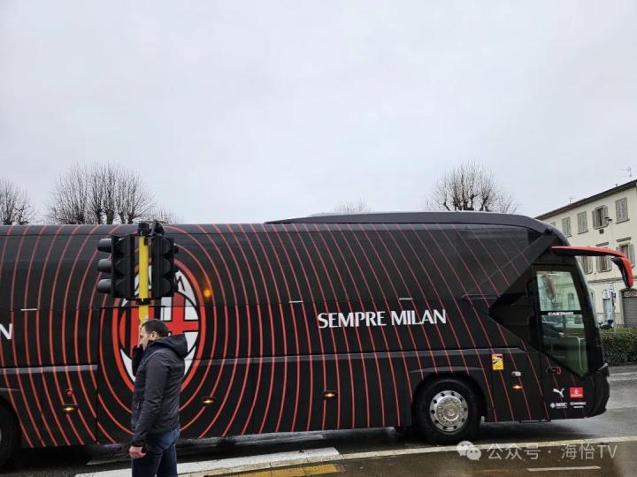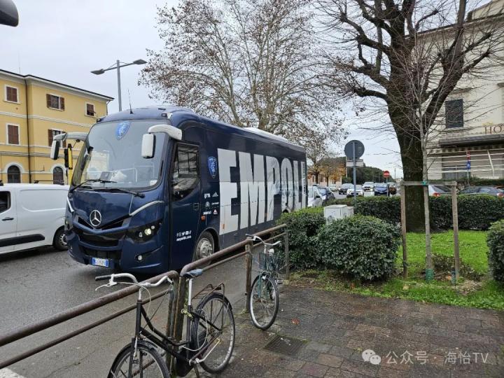 这一天的我真是非常幸运,一走出火车站就遇到了恩波利的球队大巴,当然因为使用了防偷窥玻璃,我无法看到大巴内部的情况,但这是我第一次看到欧洲五大联赛球队的大巴(但可不是最后一次),这令人非常兴奋。与我一同走出火车站的球迷们则瞬间“暴露身份”了,他们对着大巴做出嘲讽性手势,一看就知道他们一定是米兰球迷。