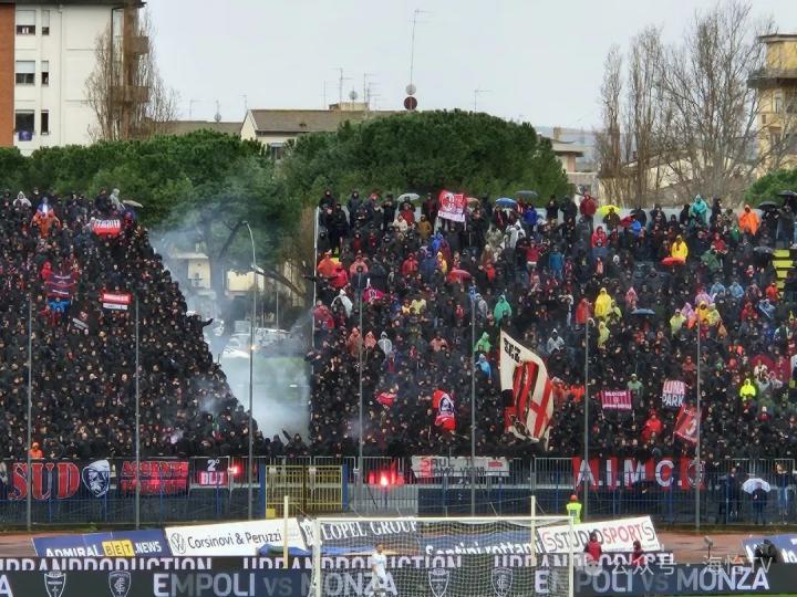 最终客场作战但宛如主场作战的AC米兰3-0击败真正的主队恩波利,我所属看台的米兰球迷兴奋庆祝。在我所处的看台还是可以看到不少恩波利球迷的,令人感动的是,哪怕比赛早早没了悬念,哪怕天气非常糟糕,他们也没有提前离场。目前恩波利正处于保级泥潭中,像恩波利这样的小球会非常依赖门票收入,而只有留在意甲,像AC米兰这样的豪门球队才会来这里比赛,豪门球队的球迷们才愿意来这里看球,凭借与豪门球队比赛赚取更多门票收入才能让他们良好运营下去,真心希望恩波利在本赛季能够保级成功!