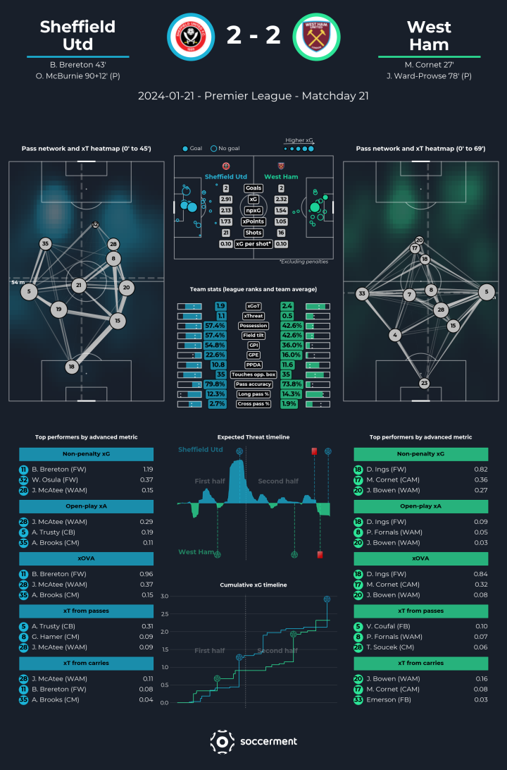 这次展示的是足球数据网站soccerment的英超第21轮昨晚已经打完的比赛赛后报告。