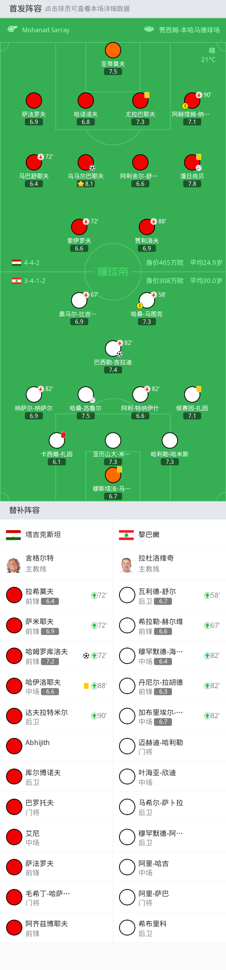 上场替补:90'+123-达夫拉特米尔, 72'11-拉希莫夫, 72'22-萨米耶夫, 72'25-哈姆罗库洛夫, 88'18-哈伊洛耶夫