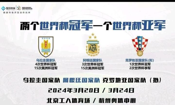 此前网传,阿根廷队、乌拉圭队、克罗地亚国家队将于3月20日、3月24日分别在北京和杭州比赛。