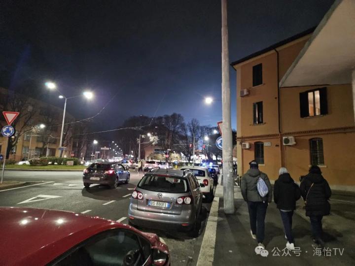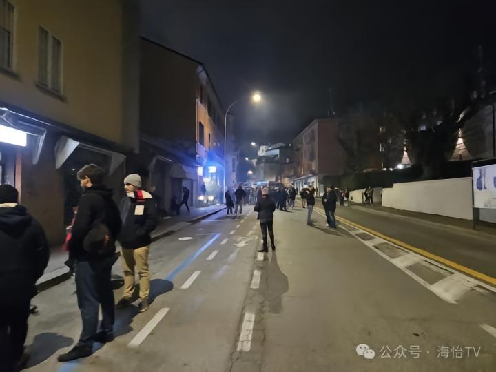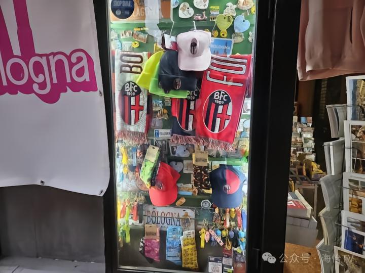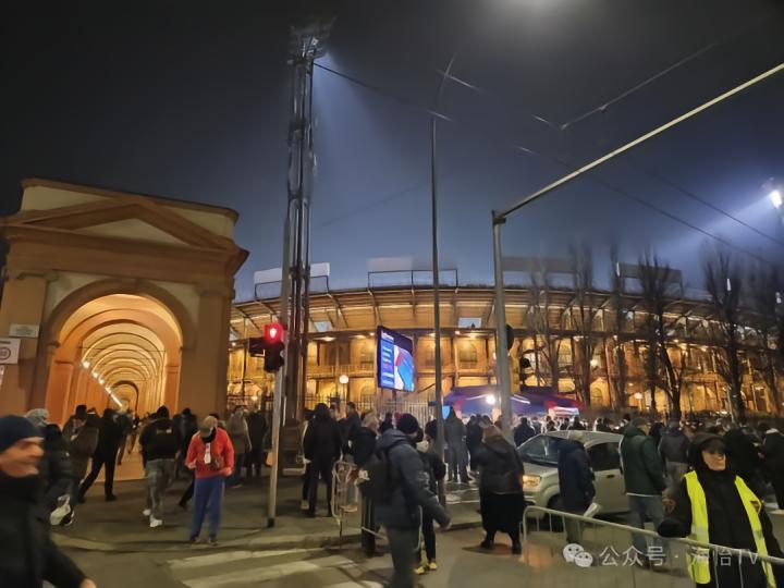 在博洛尼亚老城区逛得快入迷了,都快忘记那一晚是有一场足球比赛要看的,因此我赶紧启程前往雷纳托-达拉拉球场。球场距离博洛尼亚人居住的地方同样很远,因此他们许多人是开车前往的,在欧洲看到堵车可不是常见的事。而选择步行前往的我沿路看到了很多与博洛尼亚有关的商铺和博洛尼亚球迷,当然有些近看会发现其实是热那亚球迷,由于两队的主色调都是红蓝色,除非看到队徽,否则并不容易区分。不过两队球迷还是很友好的,甚至在第二天的旅行中我还在马乔列广场看到了热那亚球迷,看来他们来看球的同时也顺便当作一次博洛尼亚的旅行了。