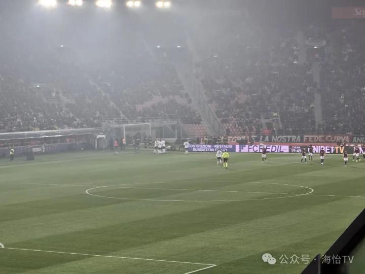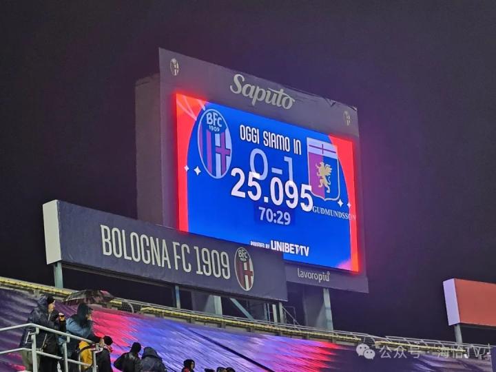 博洛尼亚在本赛季的表现非常不错,他们在少帅莫塔的带领下看到了争夺欧冠席位的机会。然而此役,率先进球的是客队热那亚,冰岛人阿尔伯特-古德蒙德松在第20分钟就取得了进球,球场陷入沉寂,只剩热那亚球迷开始狂欢。值得一提的是我所处的看台似乎距离热那亚球迷更近一些,在我这一侧热那亚球迷的声浪非常强烈,不过这不代表博洛尼亚死忠球迷是打酱油的,可以看到球场对面的博洛尼亚死忠球迷同样亢奋,只是在这样一个全露天的老式体育场里收音效果没那么好。