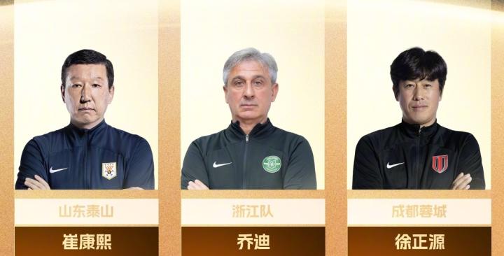 徐正源、乔迪和崔康熙三人都入围了2023赛季中超年度最佳教练的评选。最终,崔康熙当选年度最佳教练。
