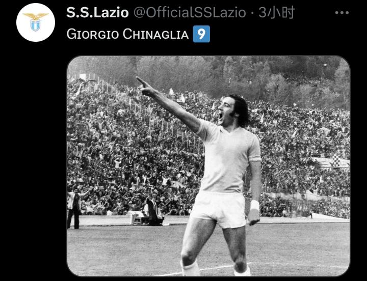 俱乐部在社交媒体上用一张重要的照片来纪念他,这也许是拉齐奥历史上最美丽的照片,这位历史上最伟大的9号球员在德比进球后直指罗马南看台。