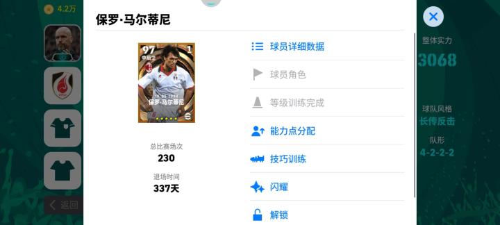 马尔蒂尼(Paolo Maldini)意大利传奇...实况huo与星2024-01-26 14:56马尔蒂尼(Paolo Maldini)意大利传奇,做到了一人一城。马尔蒂尼擅长出色的技术、出色的防守和迅速的反应能力,以及出色的领导力和稳定性而闻名。他的位置是左后卫或中后卫,他在AC米兰期间共帮助球队赢得了多项冠军,包括7个意甲冠军和5个欧冠冠军。 在实况里他也是我后防线的中坚力量,拥有不错的身高模型,出色的双速,出色的四项防守能力。技能很全,不需要花技巧卡去额外打技能。非常完美的一张卡。展开更多
