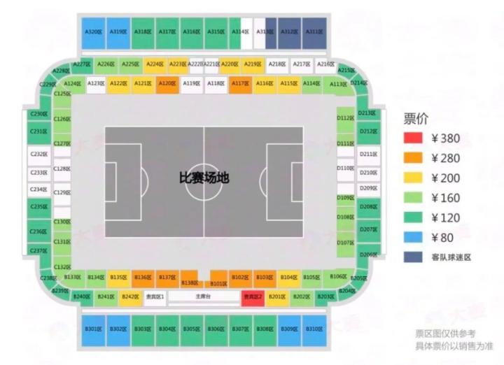 助威年票:680元/赛季 位置:C232区、C234区、D209区、D210区、D211区,共1129席