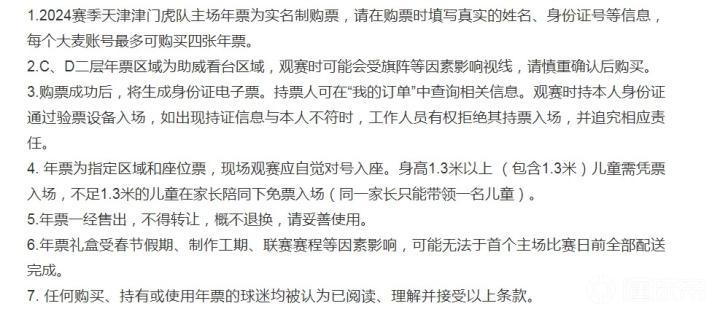 津门虎2024赛季年票公告:2月3日20点开售,价格680元-1980元