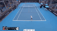 2022年澳网,19岁的郑钦文第一次出战大满贯比赛,首轮对阵萨斯诺维奇,两人一路打到决胜盘抢十,取得7-4领先后,郑钦文开始握拳庆祝胜利,并准备走到场地中央和对手握手。