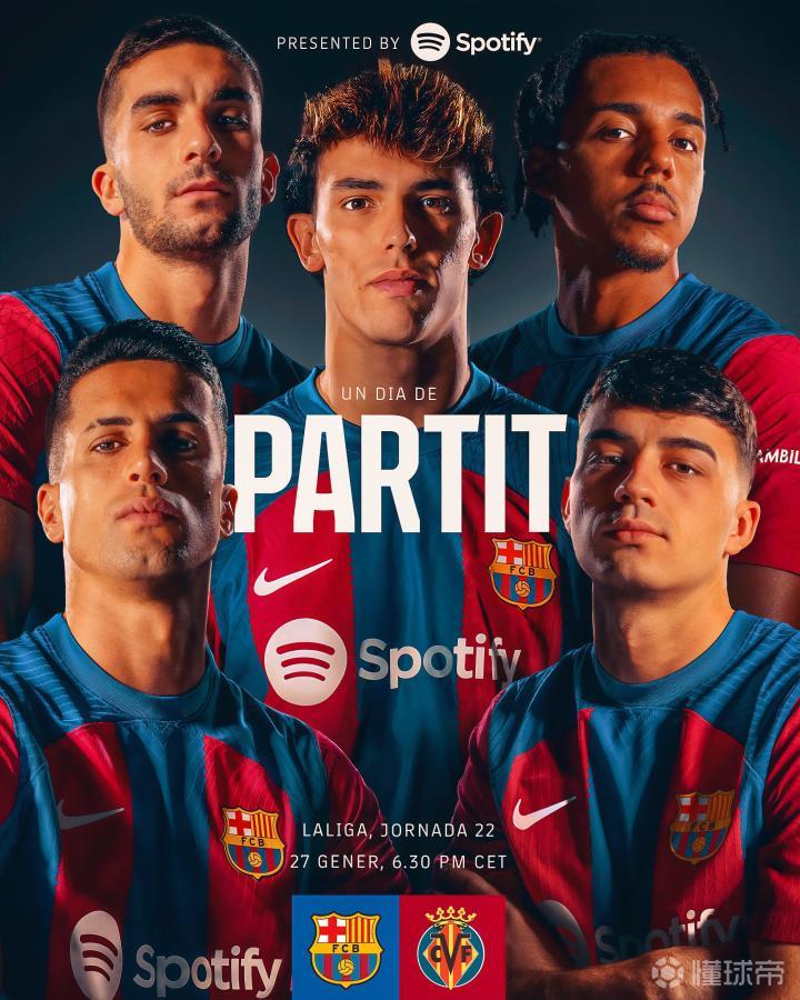 西甲第22轮,巴萨将主场对阵比利亚雷亚尔,赛前,巴萨官方发布比赛海报,菲利克斯领衔出镜。