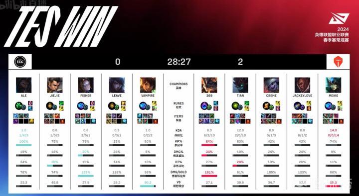 2024LPL春季赛:TES 2-0零封EDG,369完美支援取得赛季首胜