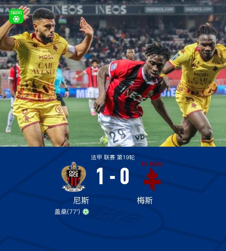 尼斯1-0梅斯迎联赛主场6连胜,盖桑点射制胜