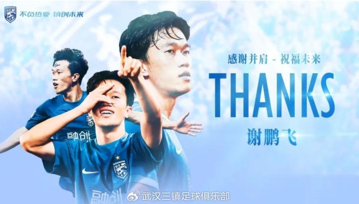 感谢谢鹏飞为武汉三镇作出的贡献,我们会始终铭记你与我们携手奋战的每一个精彩瞬间。衷心祝福谢鹏飞未来一帆风顺,愿下次相逢,我们依旧执著拼搏,不负热爱!