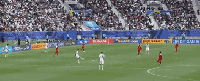 上半场伤停补时第1分钟,约旦队率先破门得分,随后5名队员围坐在场地外的草皮上,做出了“吃饭”的庆祝动作,整个庆祝过程耗时大约80秒,法加尼只是在进球队员11号奈马特回到场地内之后鸣哨并上前劝诫其迅速返回本方半场。
