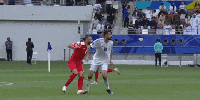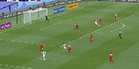 比赛上半场补时的最后时刻,卡塔尔获得角球机会,阿菲夫站在角旗区向队友示意,紧接着就像对阵中国队时一样,又一次用一记精准传球送出助攻,海多斯拍马赶到扫射扳平比分。