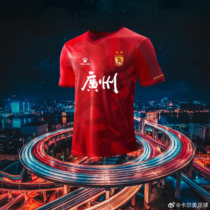 广州队新赛季球衣发布:主场如红色漩涡,客场有小蛮腰元素