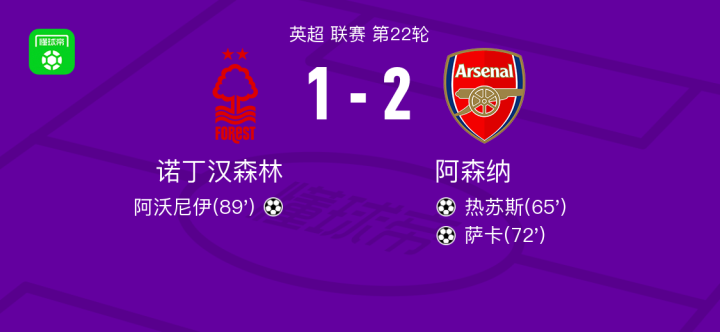 北京时间1月31日诺丁汉森林vs阿森纳,热苏斯得到全场最高的8.5分,基维奥尔得到全场最低的5.7分