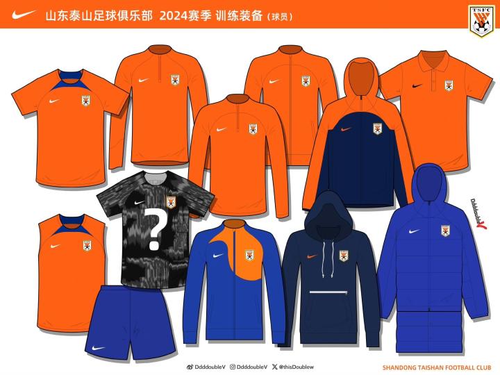 山东泰山队2024赛季球员训练装备,只剩下主客场球衣了。 来源: